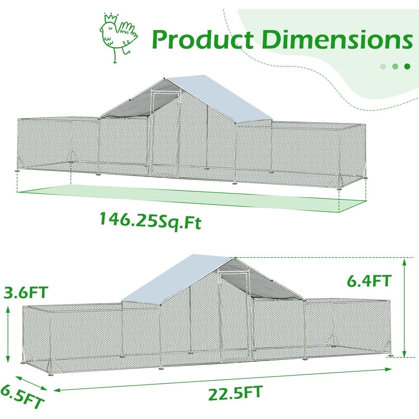 AECOJOY Large Metal Chicken Coop Run Walk-in Metal...