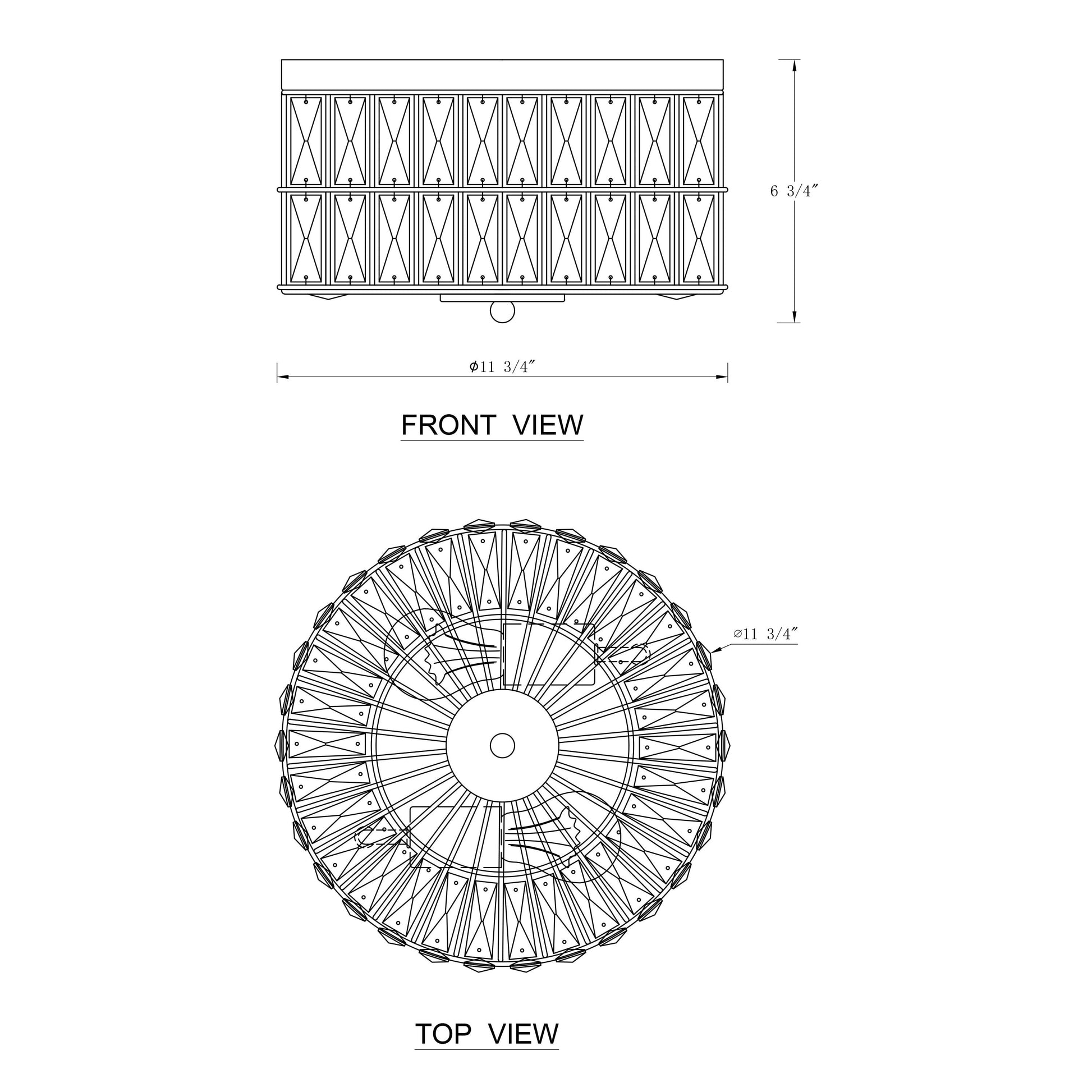 • Product dimensions: The crystal flush mount ceiling light measures D 11.75in x H 6.75in, its backplate measures D 11.75in.