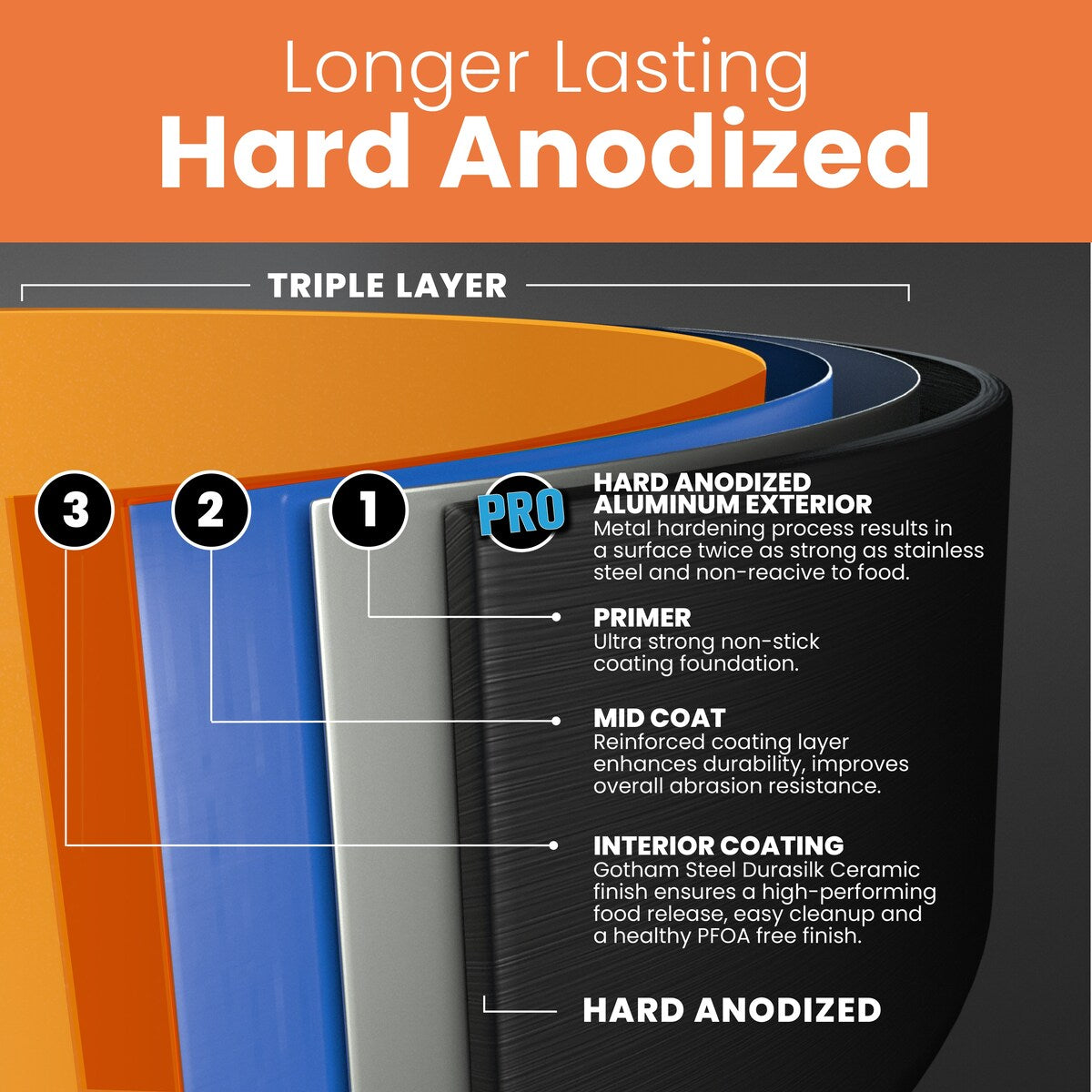 Gotham Steel Pro Premier: Gotham Steel Pro Premier cookware is engineered to provide the perfect combination of durability, effectiveness, and style. The solid aluminum, hard anodized, nonstick, and beautiful design ensures you get perfectly and deliciously cooked foods day in and day out, hassle free, while adding style to any kitchen.