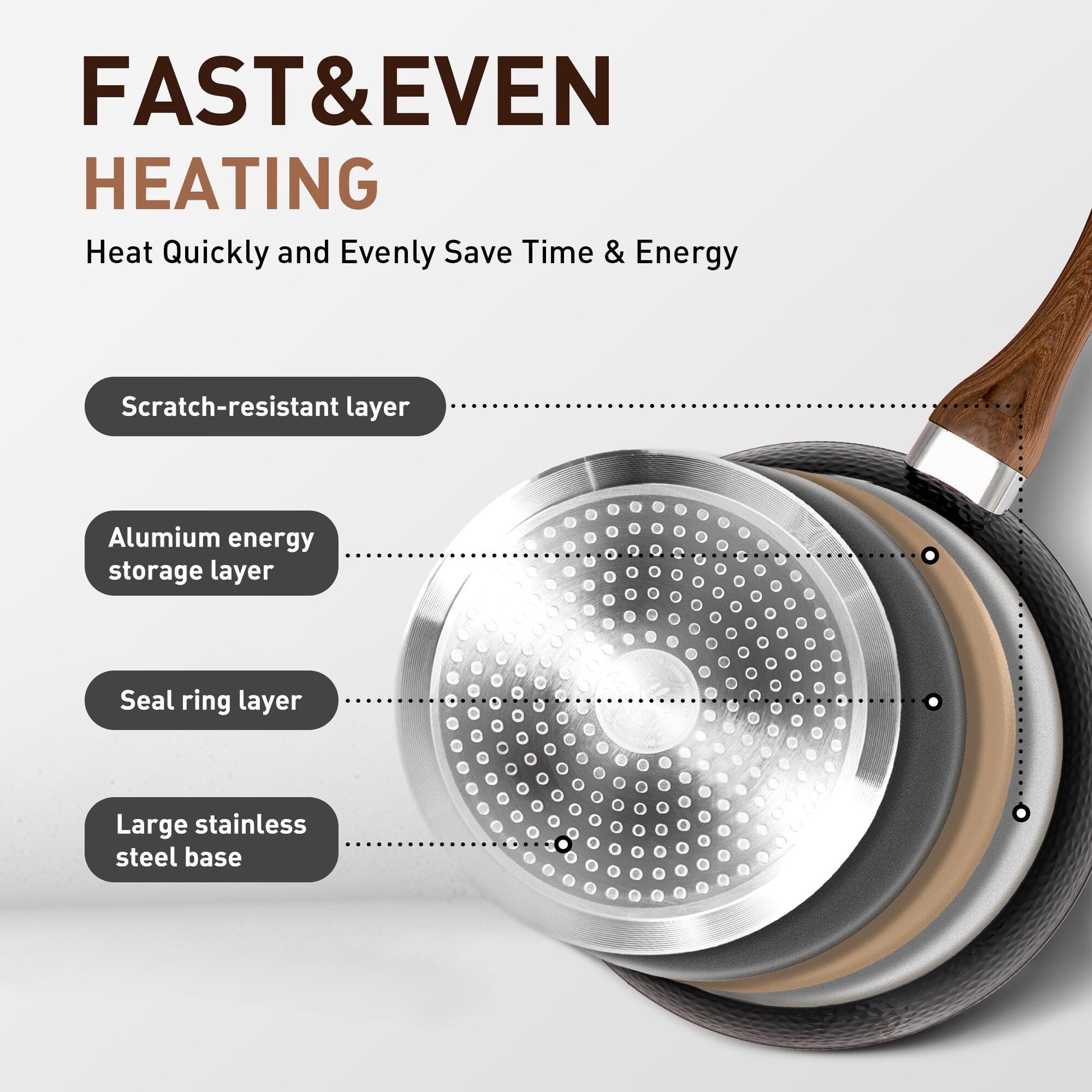 • Natural marble coating ensures super non-stick performance