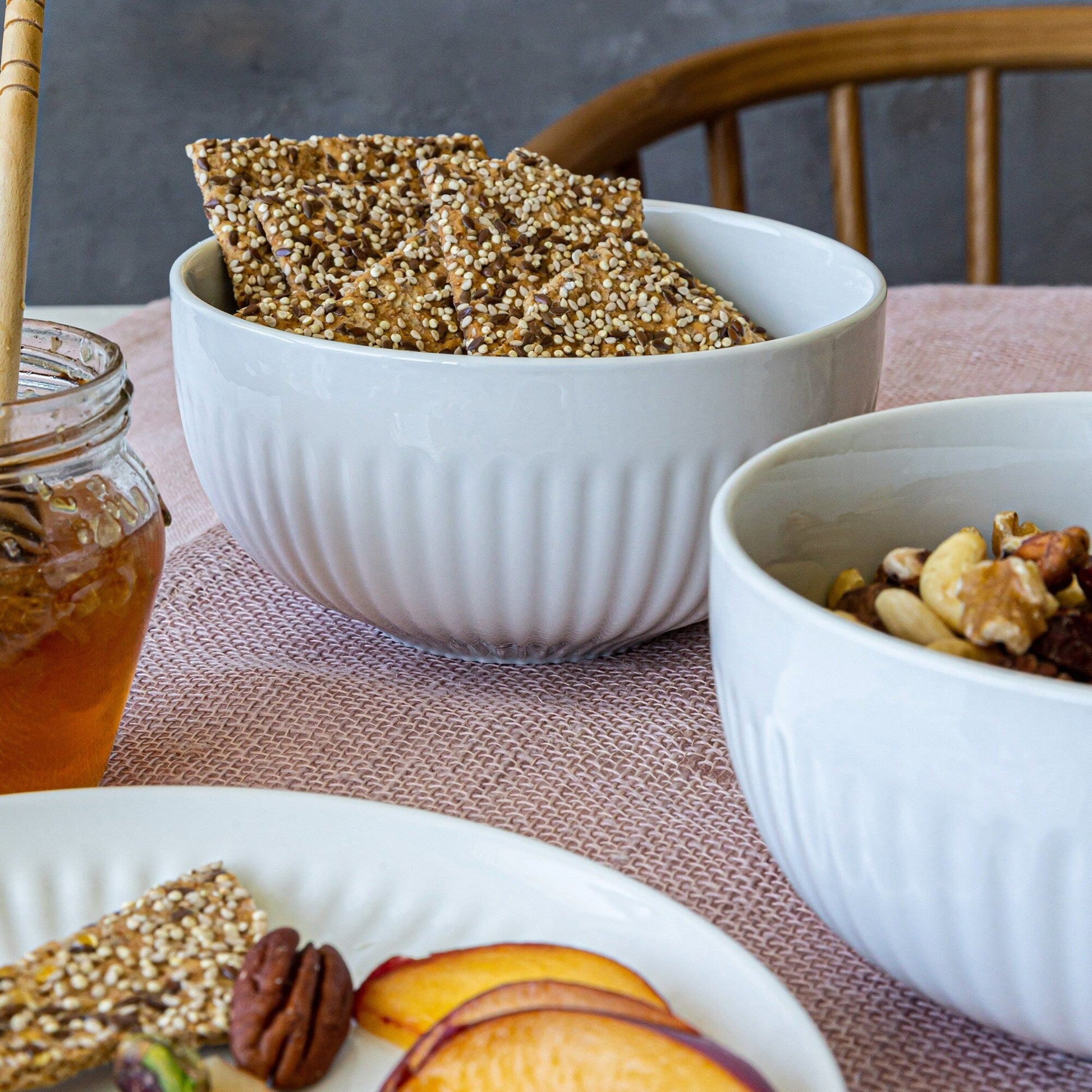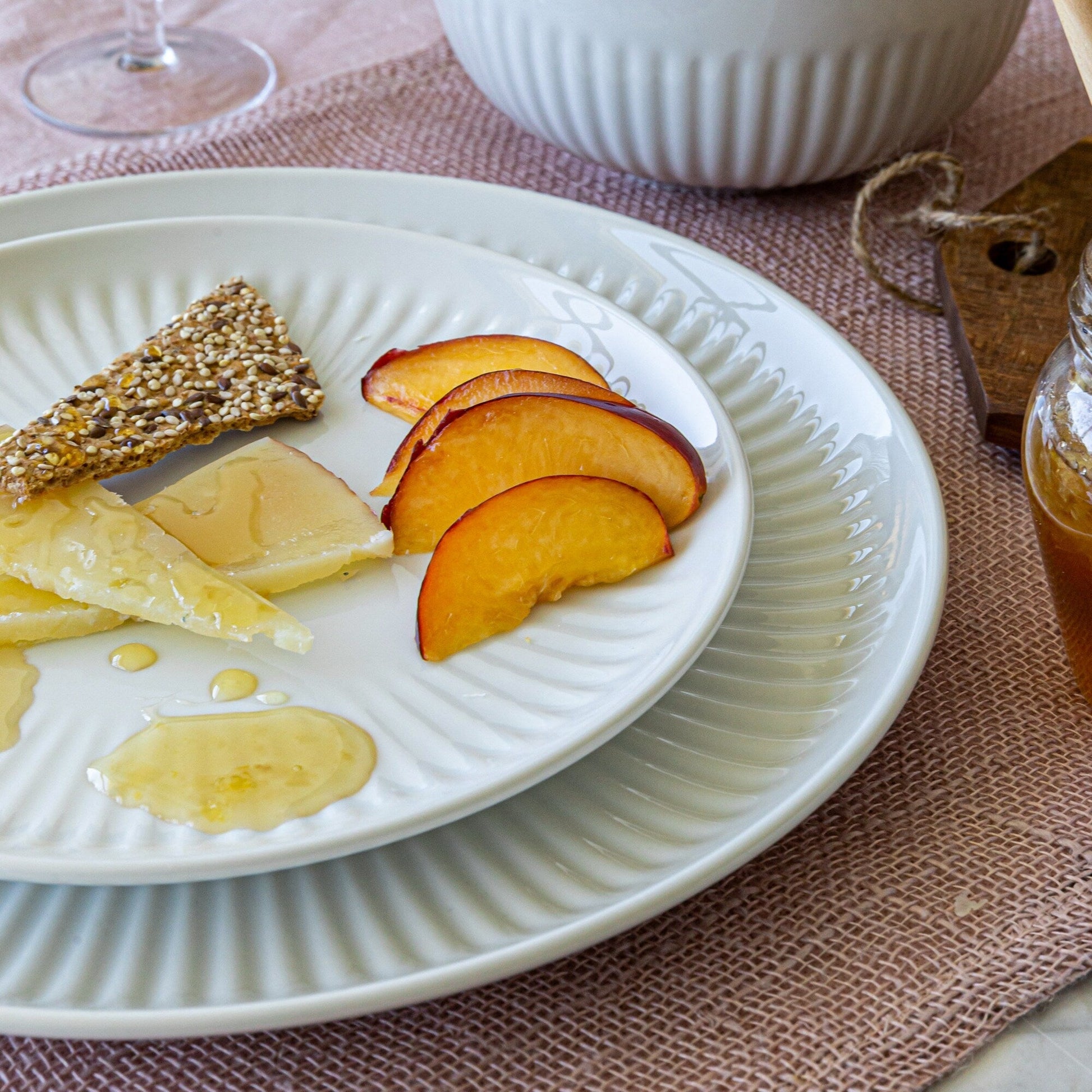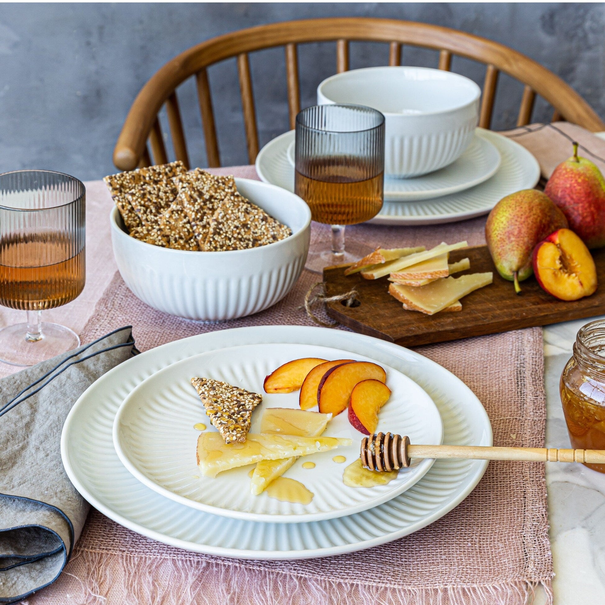 Over and Back White Porcelain 24pc Fluted Dinnerware Set