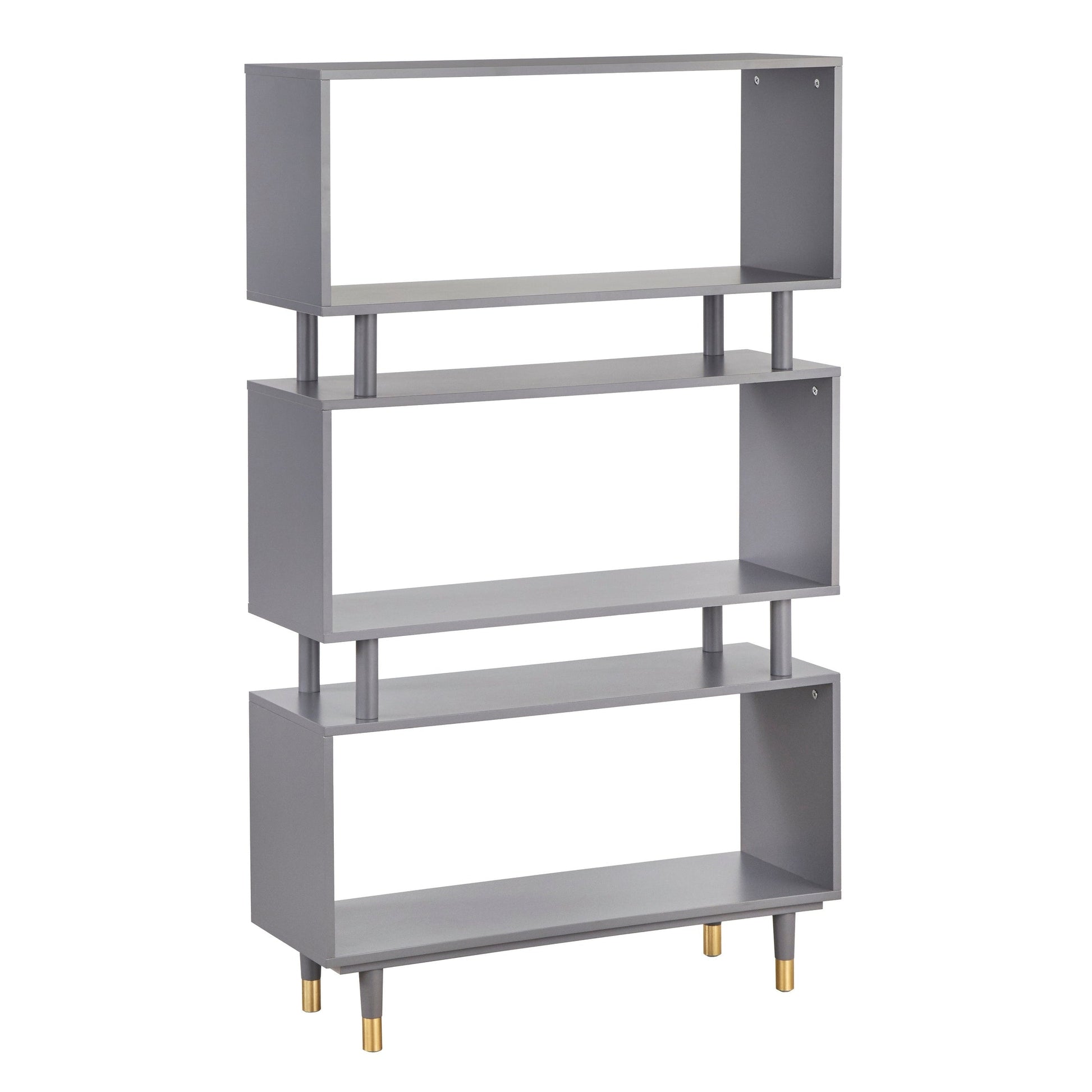 Add a touch of retro-modern style to your home decor with the Margo bookshelf from Simple Living. This eye-catching piece features three tiers with open sections dividing each for a unique and versatile look. Made of high-quality MDF and supported by solid wood legs with metal foot caps, it's both lightweight and sturdy. Choose from a variety of sleek, modern finish colors to best match your decor. Matching Margo living room pieces available separately. Features: