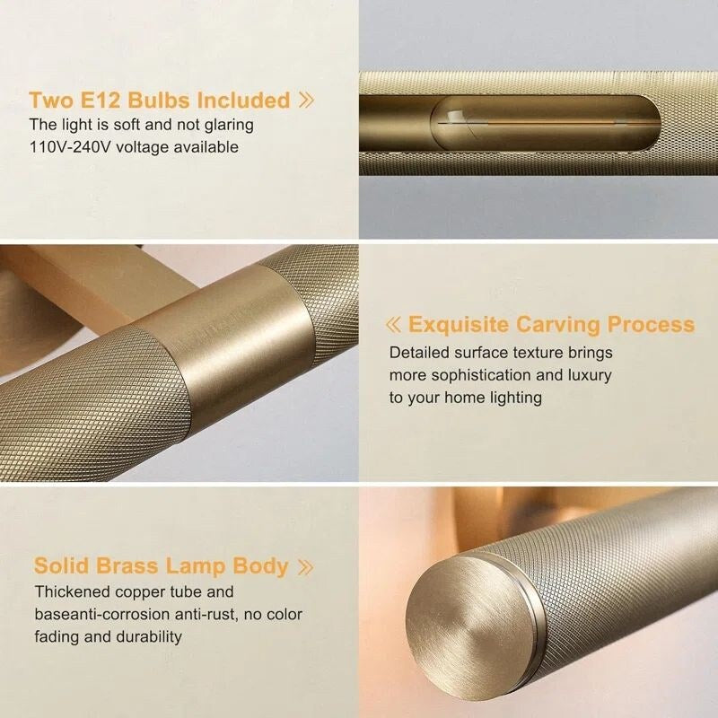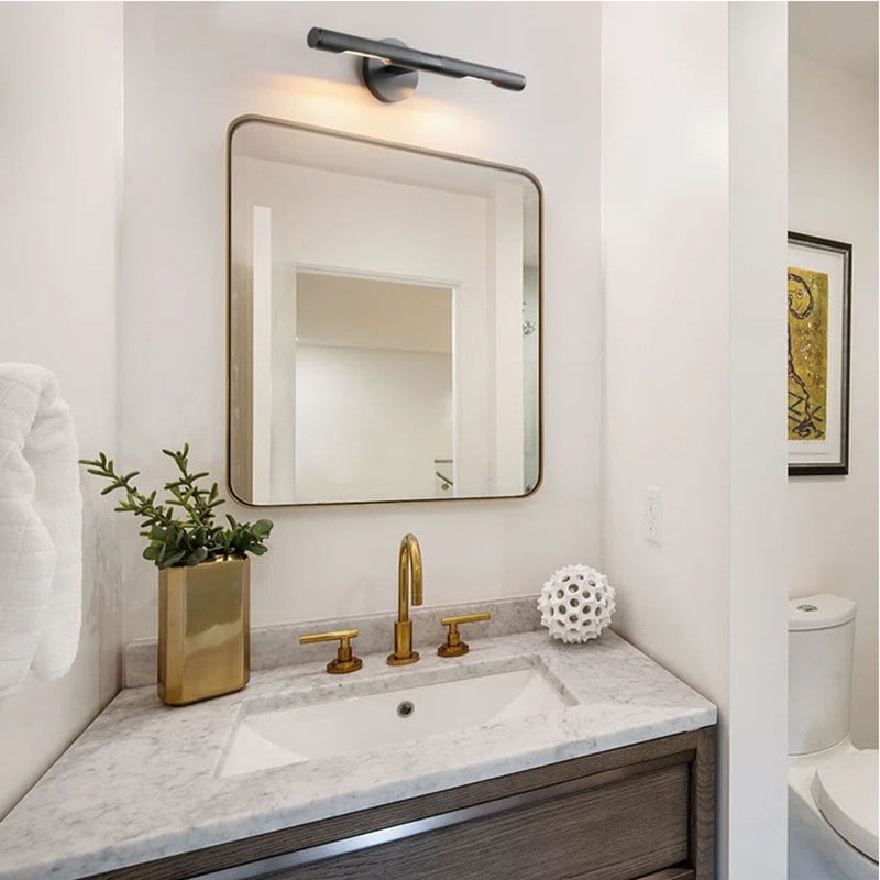 The Picture Lights For Wall are constructed from high-quality materials including a sturdy metal frame and thick glass to ensure durability and longevity.  The gold vanity lighting fixture finish gives it a sleek and stylish look that complements any interior design scheme, making this a stunning piece of lighting that will enhance the décor of any room it is placed in. This 2-light wall light fixture is versatile and you can either hang it vertically next to your mirror or horizontally above the mirror.