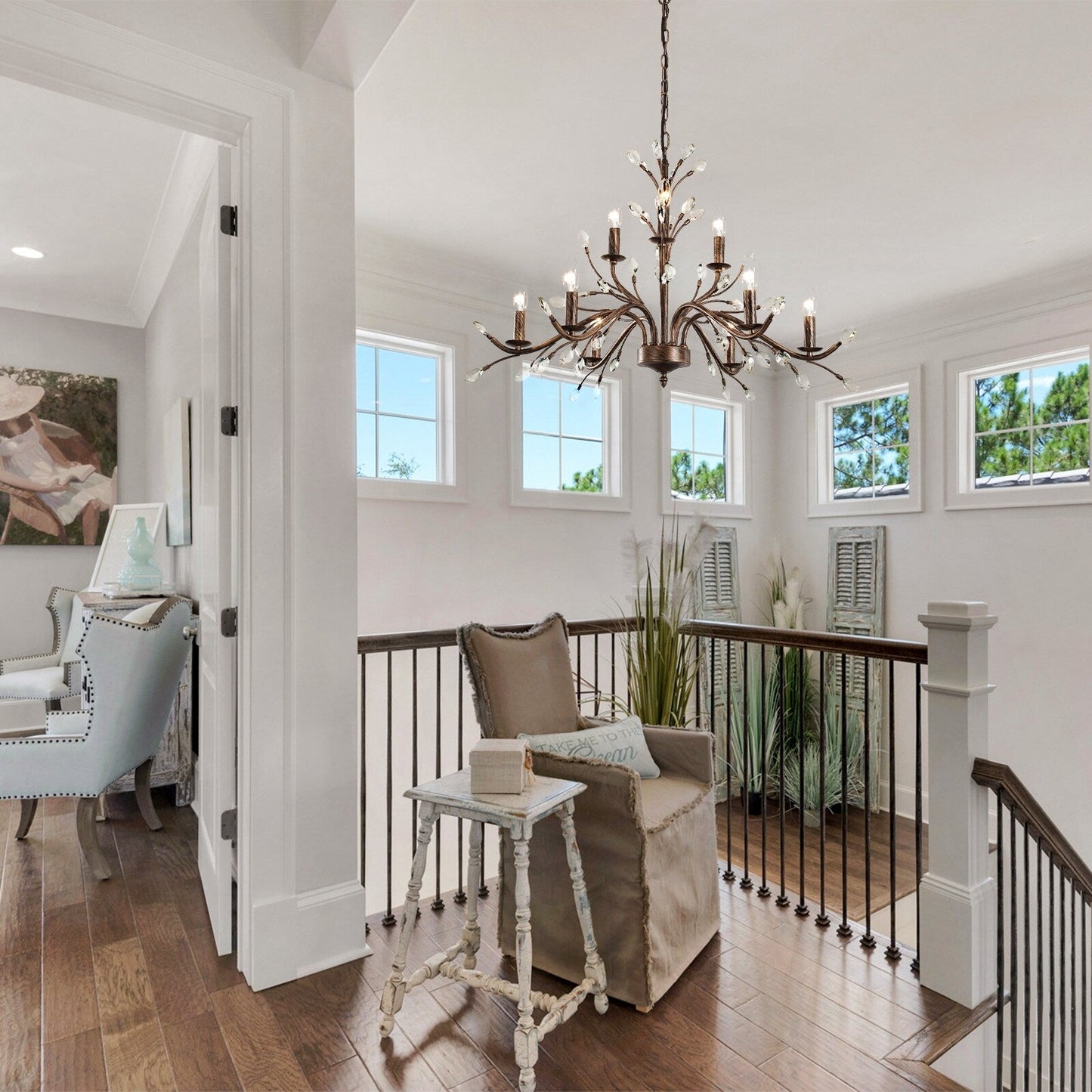 Enhance your home with the timeless elegance of this vintage crystal-accented branch chandelier. Featuring an intricate branch design with candle-style lights and sparkling crystal accents, this crystal chandelier adds a touch of sophistication and luxury to any room. The antique bronze finish or nickel finish and 9/21 lights provide a warm and inviting glow, perfect for larger spaces. Crafted from durable metal with an adjustable chain for customizable height, this chandelier combines style and functionality. Easy to install, it comes with all necessary hardware and detailed instructions.Transform your space with this stunning chandelier, perfect for creating a warm and inviting ambiance in any room.