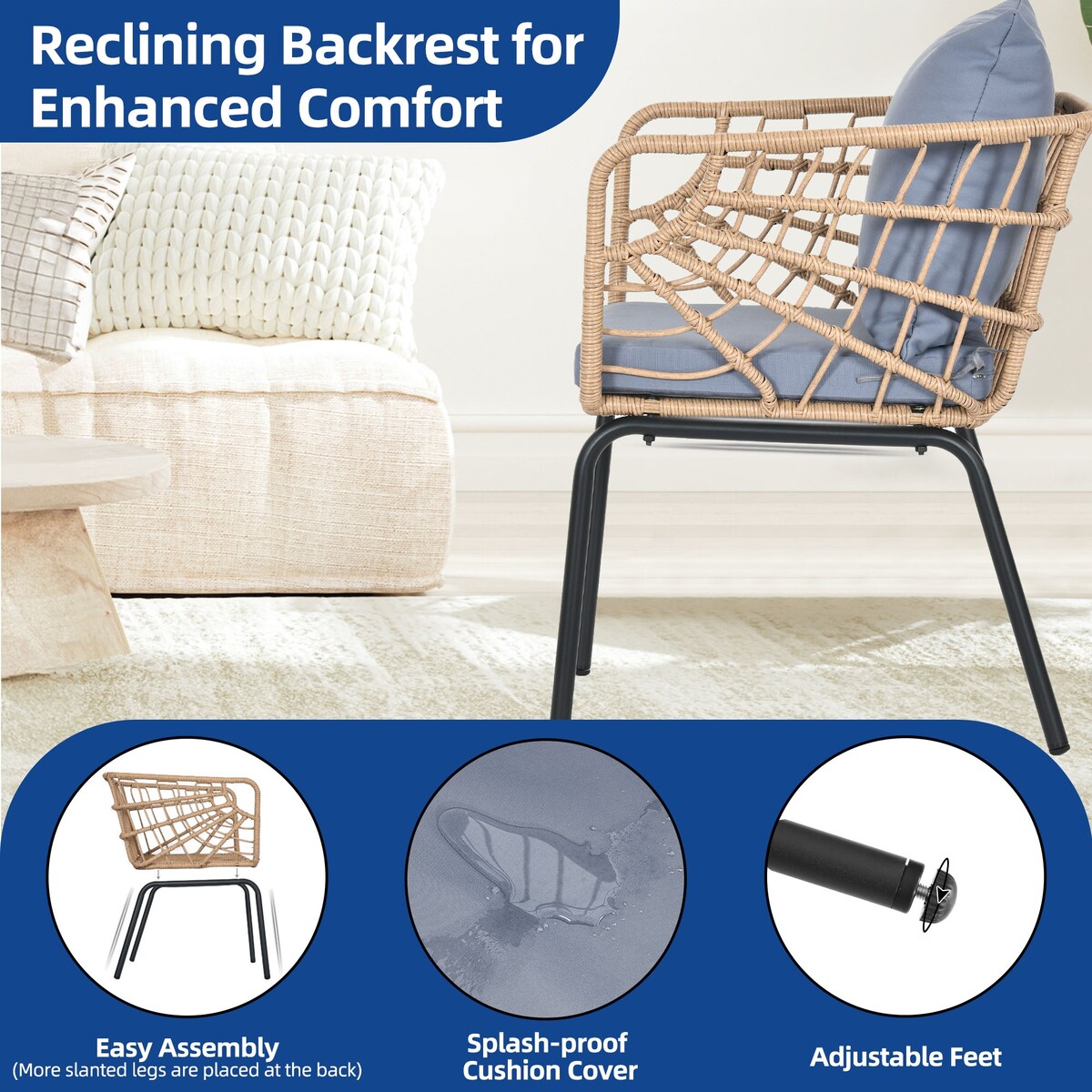 • Sturdy & Weather-Resistant: Made with a metal frame and all-weather PE wicker, ensuring stability and durability with a weight capacity of 259lbs