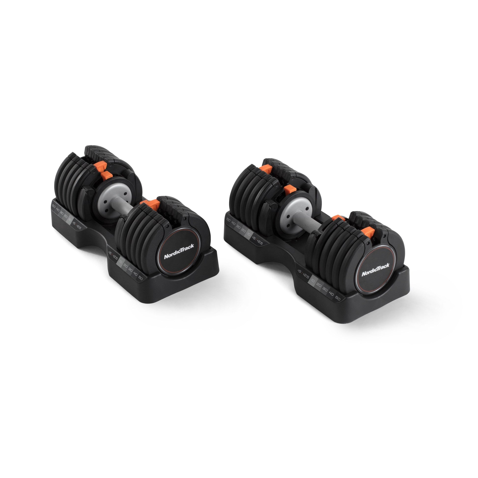 Experience a Full Body Workout: Enjoy total-body strength training in the comfort of your own home with the NordicTrack Select-a-Weight Dumbbells. With a max weight of 55-pounds each, these versatile dumbbells can replace 30 weights in one compact, easy-to-use set. Easily choose between 10 and 55 pounds with a smooth weight selection system, and enjoy convenient storage in custom-molded trays that are clearly marked with weight identification. Discover iFit Workouts: Download the iFit app and start your free trial to stream on-demand video workouts directly to your own tablet or smartphone. With iFit, professional trainers will coach you through a variety of strength-building workouts on your time, in your home. Replace 30 Dumbbells: Each Select-a-Weight dumbbell features 15 weight selections, so you can move in 5-pound and 2.5-pound increments from 10 to 55 pounds. Replace an entire rack of dumbbells with these compact adjustable weights. Smooth Weight Selection System: Adjust your dumbbells in 2.5 or 5-pound increments to dial in the best weight for a variety of strength-building exercises in the comfort of your own home gym - simply lift and push the Select-a-Weight tab to easily modify your dumbbell. Fitted Storage Trays Included: When not in use, your NordicTrack adjustable dumbbells can be securely stored in custom-molded trays that are clearly marked with weight identification.