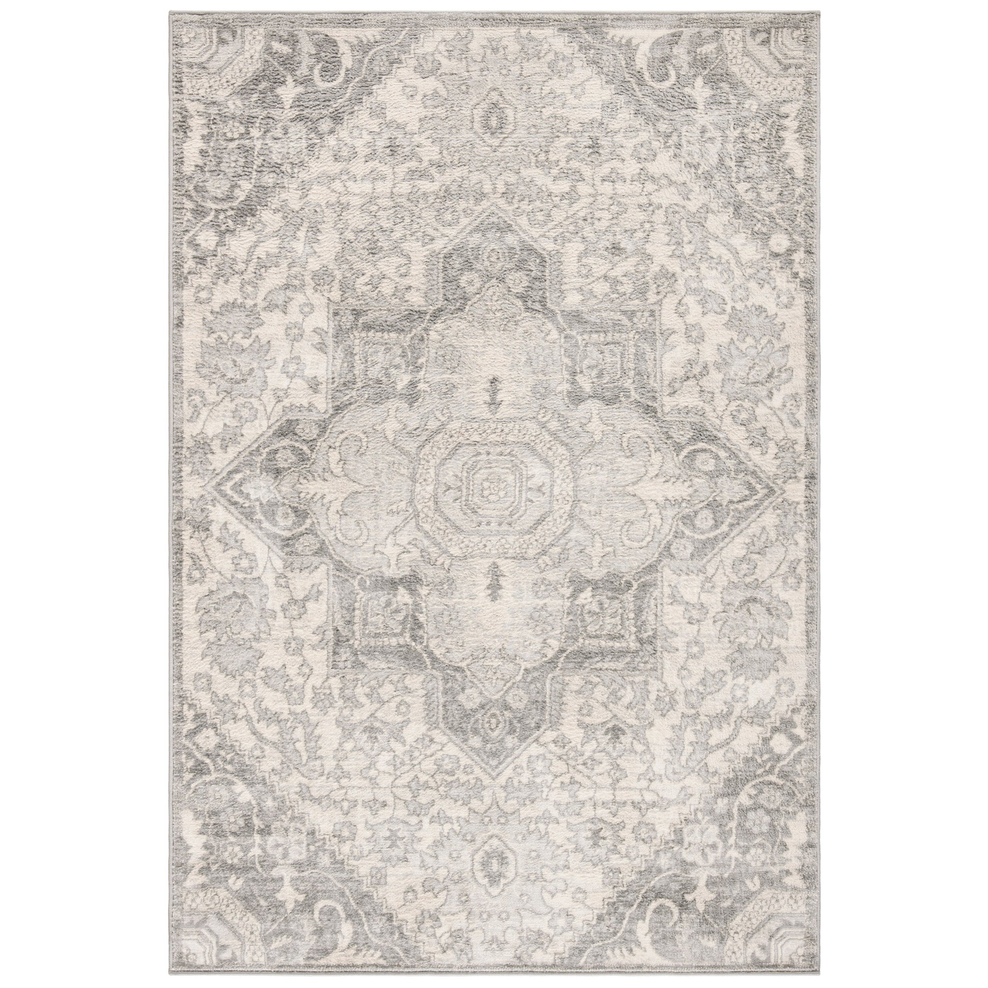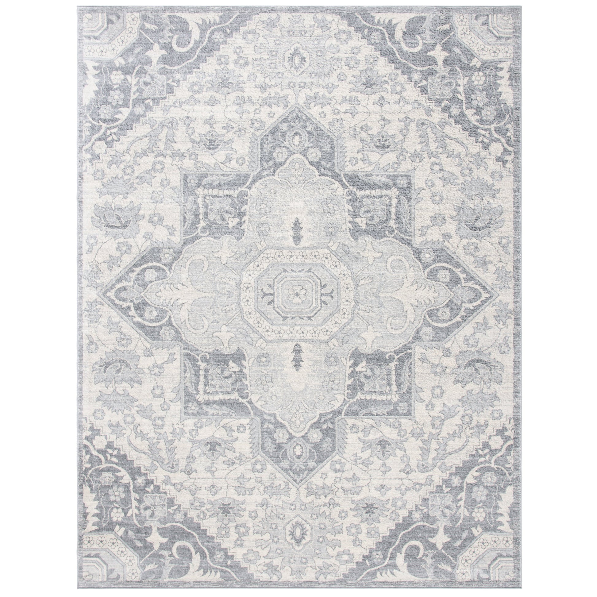 Elevate your living space with the timeless elegance of our 10' X 13' large rectangle area rug. Designed with a sophisticated transitional style, this rug seamlessly blends classic charm with contemporary chic, making it an ideal accent for any room in your home.Crafted with precision on power looms, this rug boasts a precise and intricate pattern that draws the eye. The beautifully detailed design features an ornate central medallion surrounded by florals and scrolling vine motifs, rendered in a soft, harmonious palette of grey and cream. This stunning pattern exudes a sense of luxury and refinement that will complement both modern and traditional interiors.This area rug is more than just a visual delight; it is constructed with durability and comfort in mind. Made of a durable blend of 60% polypropylene and 40% jute, it is designed to withstand the test of time while providing a comfortable underfoot sensation, thanks to its 3/8' pile height. The power-loomed construction ensures a tight weave that is resistant to shedding and perfect for high-traffic areas of your home.Imported from Turkey, a country renowned for its rich history in rug-making, this piece brings a touch of worldly sophistication to your d?cor. Additionally, the rug is OEKO-TEX certified, ensuring it is free from harmful substances and is safe for your household.Incorporate our exquisite area rug into your home and enjoy the perfect blend of style, comfort, and quality. Whether