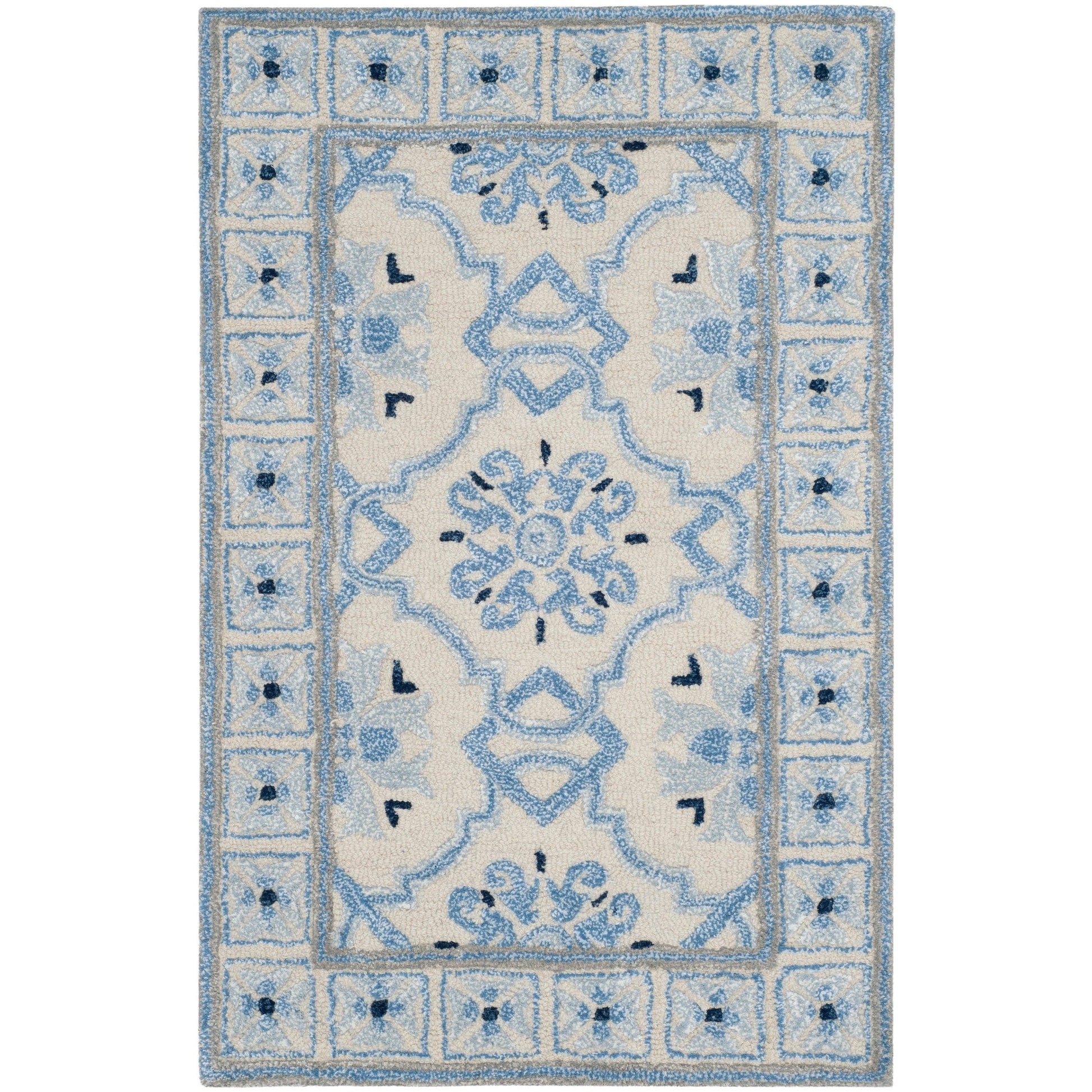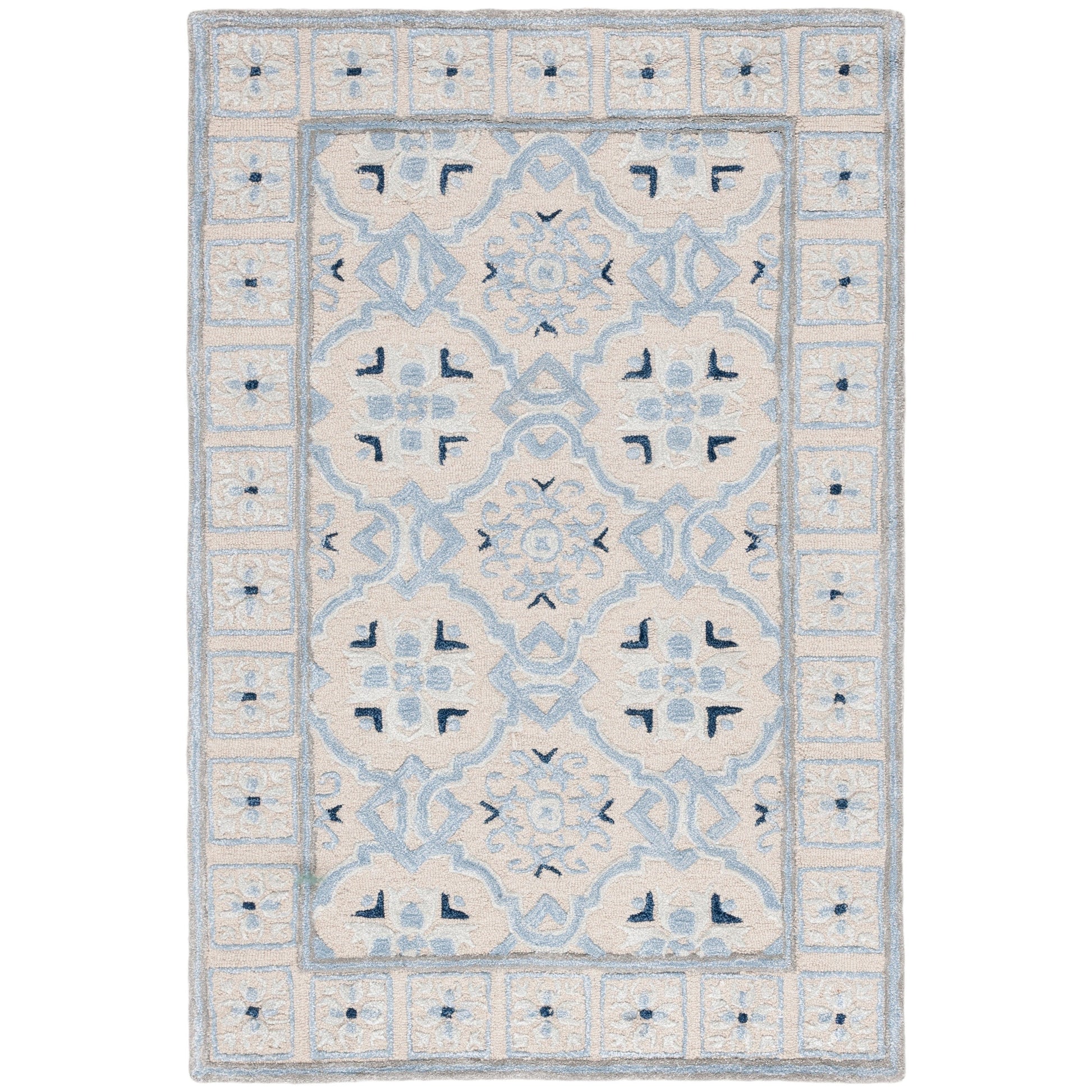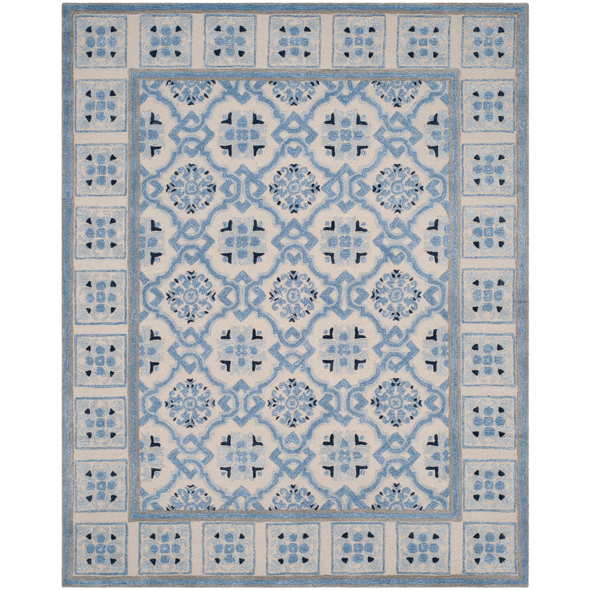Experience the perfect blend of tradition and modernity with our exquisite 10' x 14' Hand Tufted Wool and Viscose Area Rug. Impeccably crafted in India, this luxurious large rectangle rug boasts a pile height of 3/8', offering a sumptuous underfoot feel that will elevate any room in your home.The harmonious ivory and blue palette forms a serene and elegant backdrop suitable for various interiors, from classic to contemporary. The 60% wool and 40% viscose composition ensures a soft, velvety texture coupled with durability for enduring beauty.This rug's pattern features a sophisticated interplay of geometrical and ornamental motifs, creating a visual narrative that captures the essence of timeless design. The border is adorned with intricate details that frame the central pattern, enhancing the overall composition and adding depth to the design.Whether you're looking to accentuate your living room, bedroom, or dining area, this Hand Tufted area rug will infuse your space with a touch of elegance while providing the comfort and quality you desire. Create a statement with this culturally rich, yet subtly modern piece, and enjoy the luxury and refinement it brings to your home.